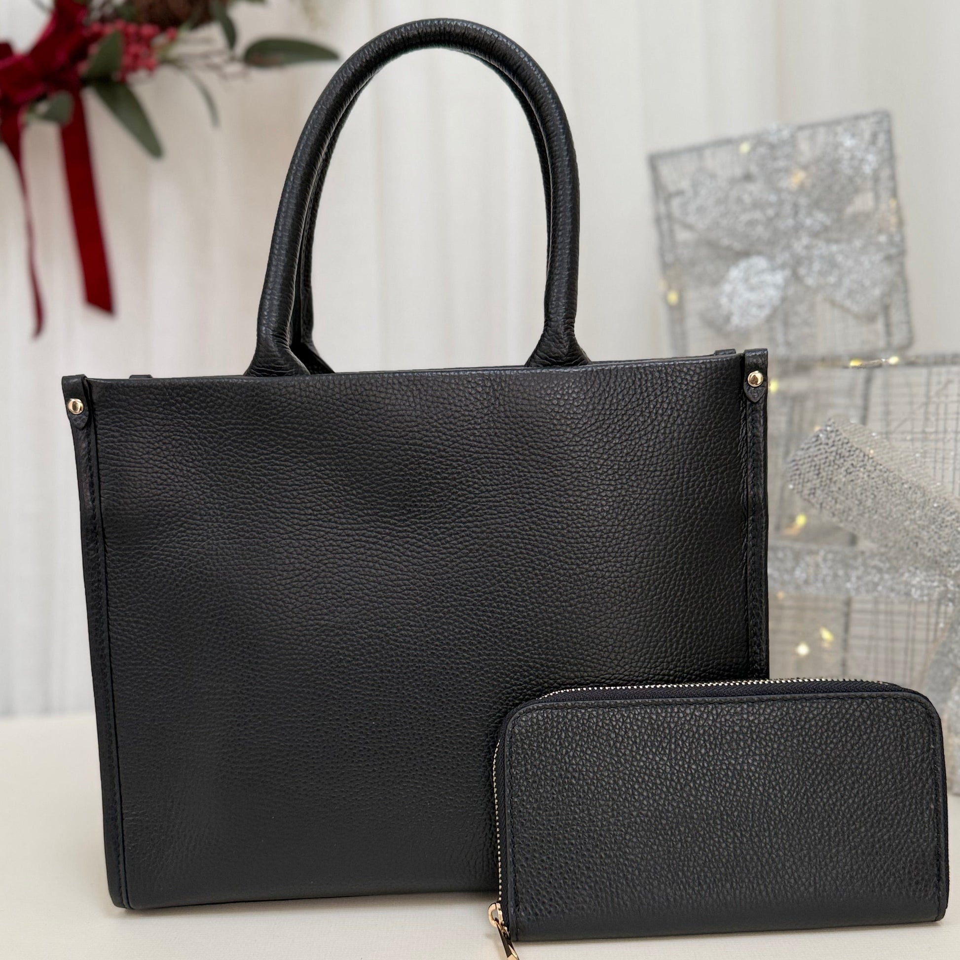 Sample Midi Leather Tote Bag Black FREE PURSE