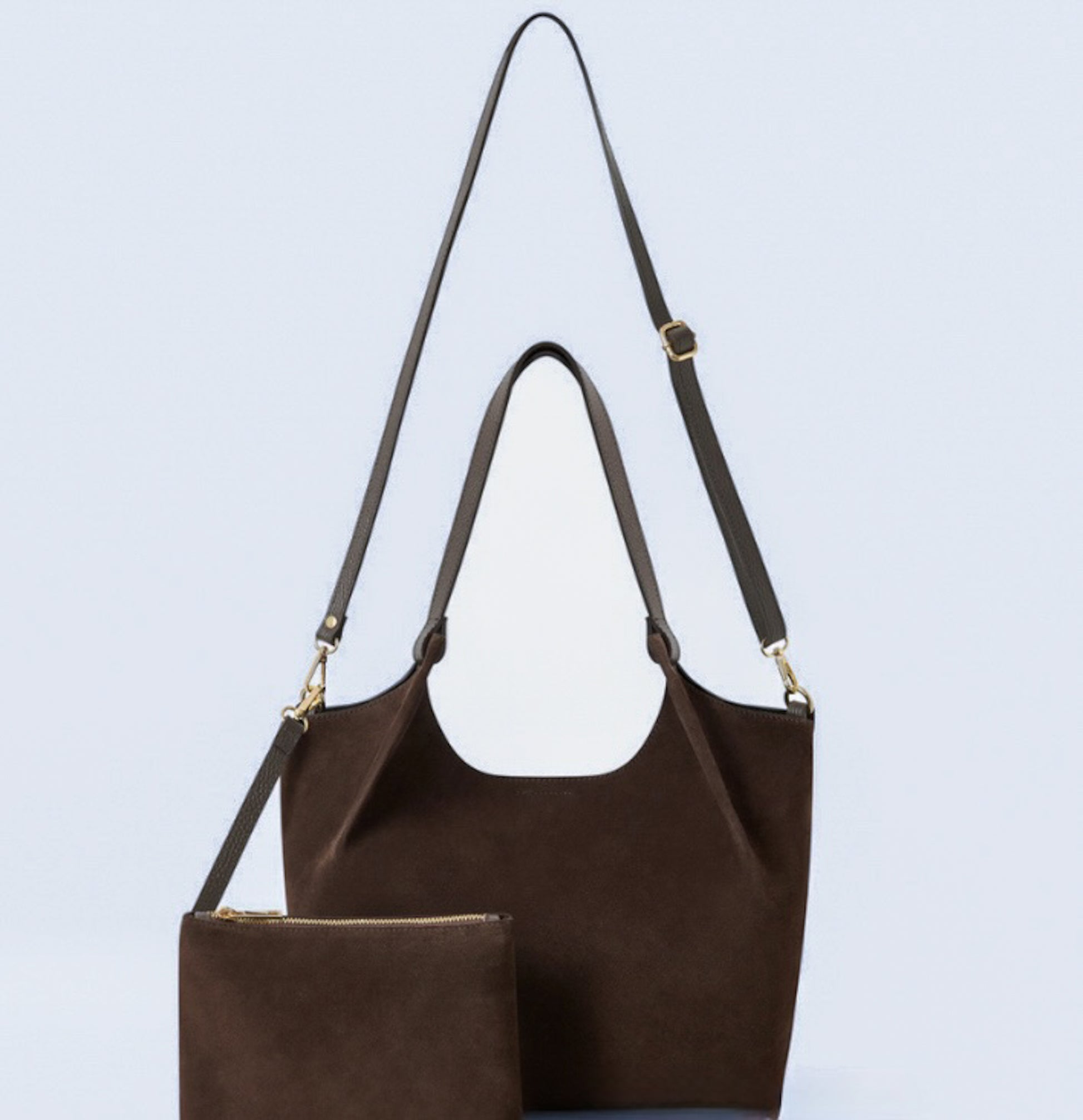The Erin Suede Large Tote Bag combines practicality with luxury. Its spacious size is perfect for carrying a small laptop, while its trending brown premium suede adds a touch of elegance. Elevate your everyday look with the large suede tote bag with the versatile design.