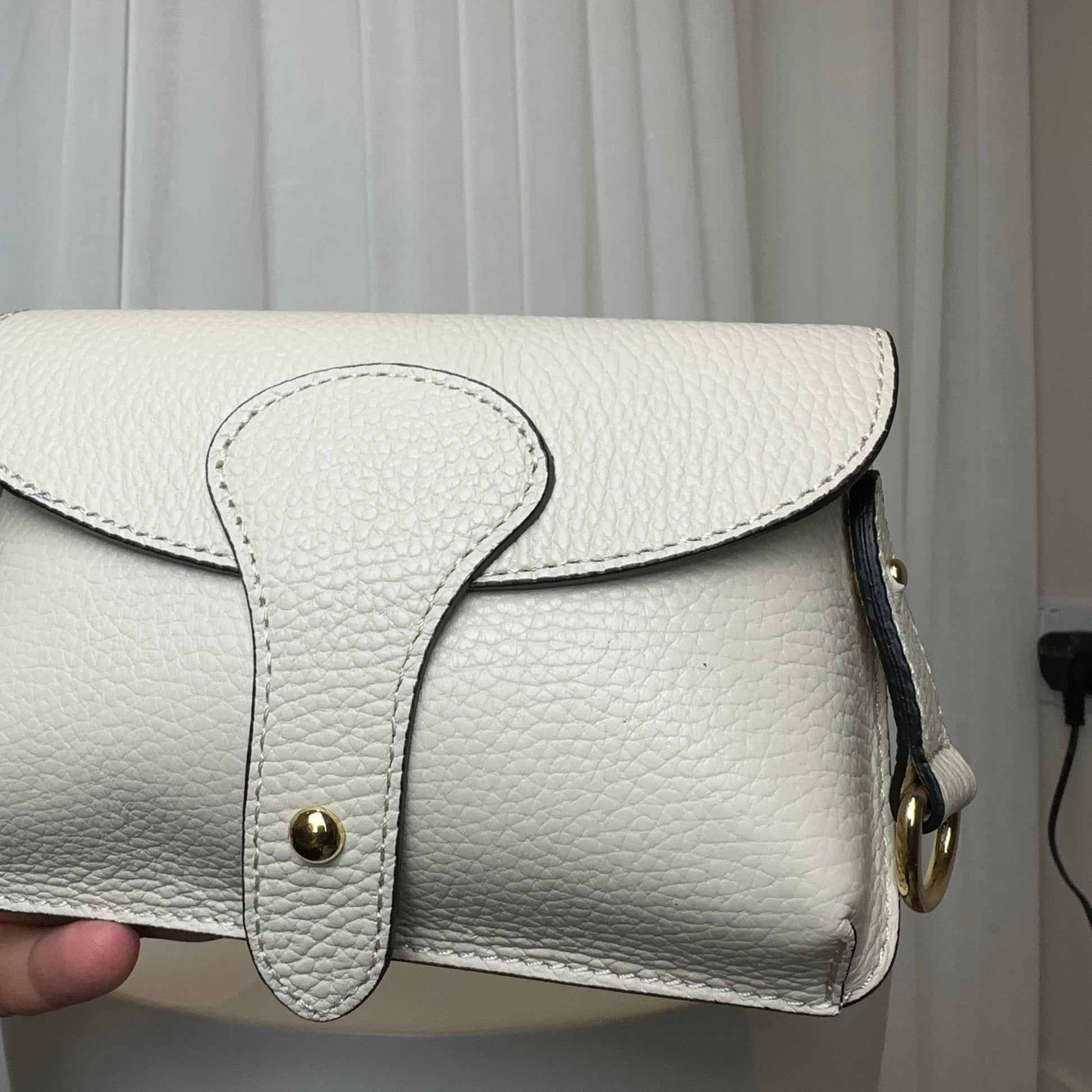 - Gold hardware and clasps