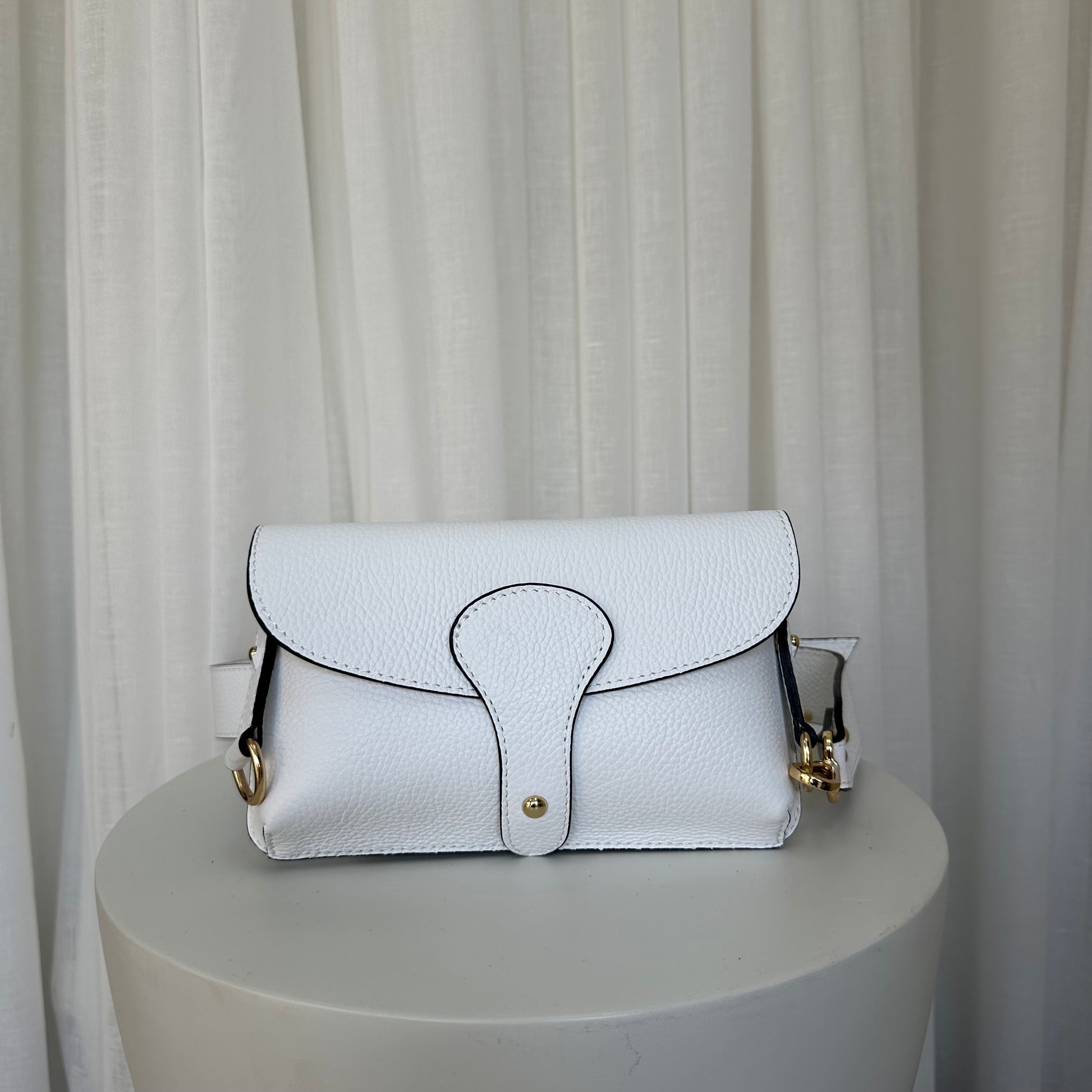 Foil embossing may display tiny breaks on pebbled leather due to natural surface texture. This is normal and part of the handcrafted nature of the bag.